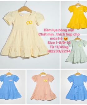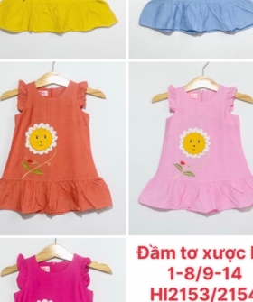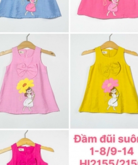 đầm yếm màu bé gái tay nhún 150/180