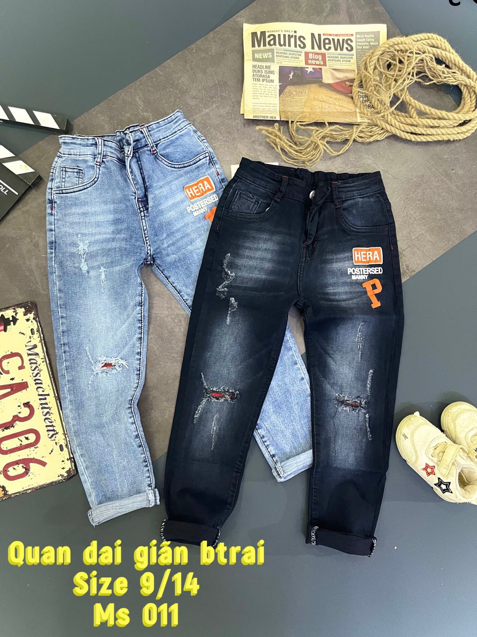 q.jean dài bé trai chữ cam 9/14